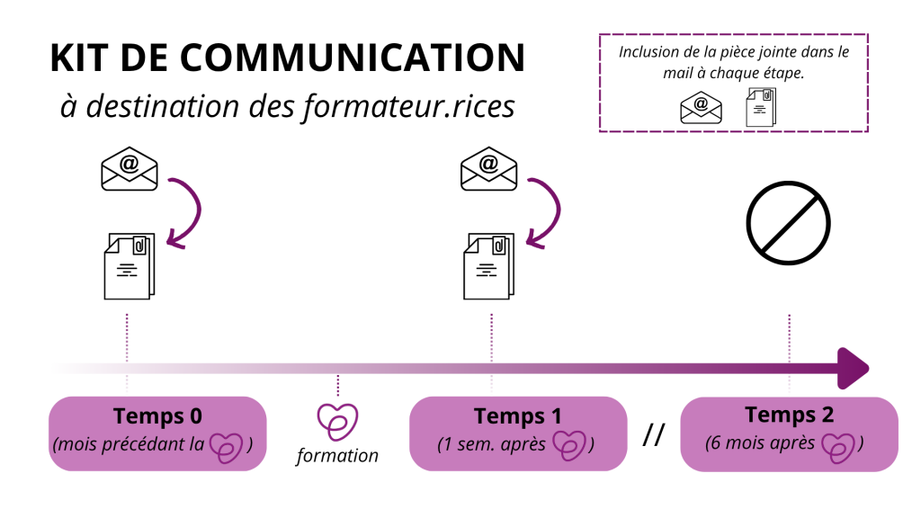 Les formateurs et formatrices devront communiquer auprès des personnes inscrites qui s’apprêtent à suivre la formation PSSM. La phase de recrutement s’étend sur environ six mois (a priori dès maintenant jusqu’en mai 2026) et l’étude durera 12 mois.